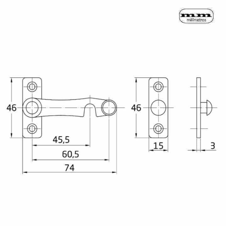 -Material: Acero Inoxidable AISI 304 (18/8). -Acabados: Brillo. -Mano de Apertura: Izquierda / Derecha. -Medida: 74x46mm. -Incluye 1 Aldabilla.