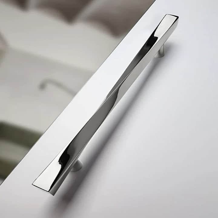 El manillón de diseño italiano Torso, de estilo elegante con un giro de 90º enalteciendo a la belleza, es fabricado en latón estampado de alta calidad. Este tirador se convertirá en el protagonista de cualquier espacio, pudiendo ser aplicado en puertas correderas, armarios, cajones, etc.