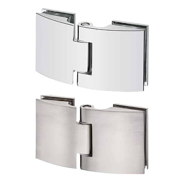 -Material: Latón. -Acabados: Cromado / Níquel Satinado. -Medida: 70x108mm. -Sujeción: Cristal-Cristal. -Para Cristal/Vidrio con Grosor de 8 a 12mm. -Peso Máximo recomendado por 2 Bisagras: 45Kg. -Incluye 1 Bisagra.