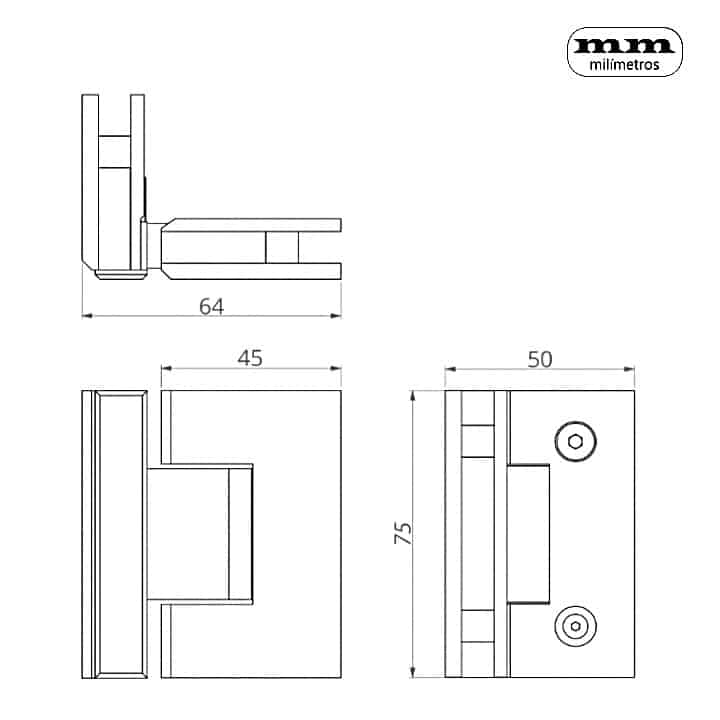 Bisagra con muelle para Cristal/Vidrio.