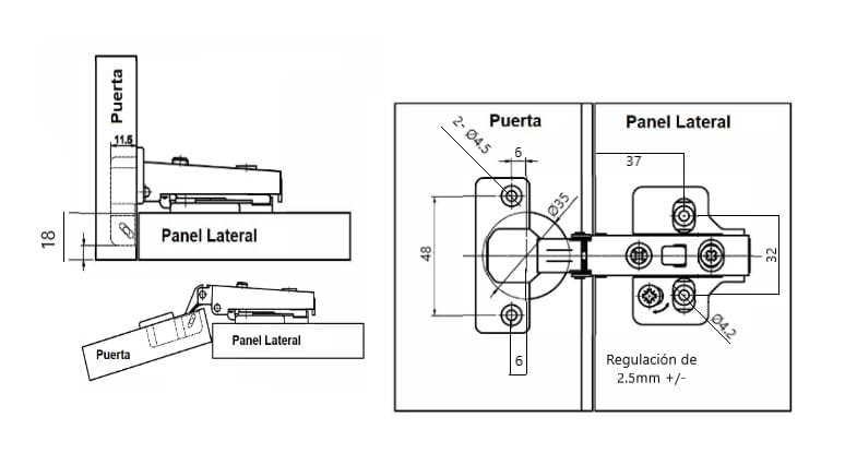 ‘-BISAGRA DE CAZOLETA RECTA SIN MUELLE.