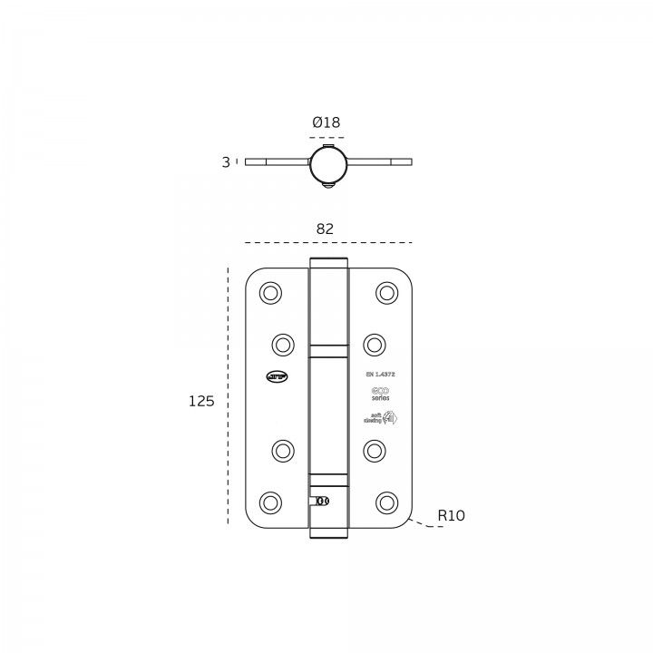 ‘-BISAGRA CON PLACA DE CANTO REDONDO. CARACTERISTICAS: