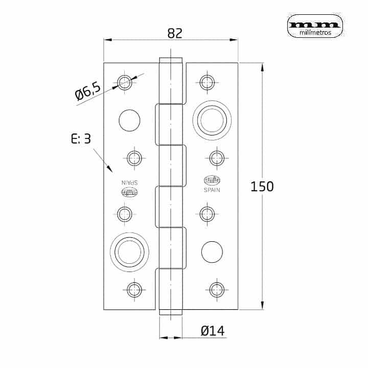 Bisagra de seguridad para puertas de entrada. Canto cuadrado, sin remate.