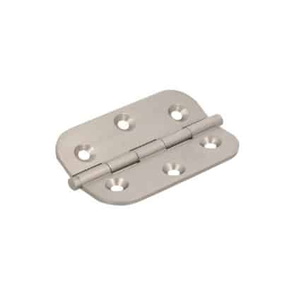 BISAGRA FIJA. CARACTERISTICAS: -FABRICADA EN LATÓN CON ACABADO EN CROMADO MATE. -CANTO REDONDO. -REMATE PLANO. -MEDIDAS: 70 x 50 x 2 mm — FVA.106.489