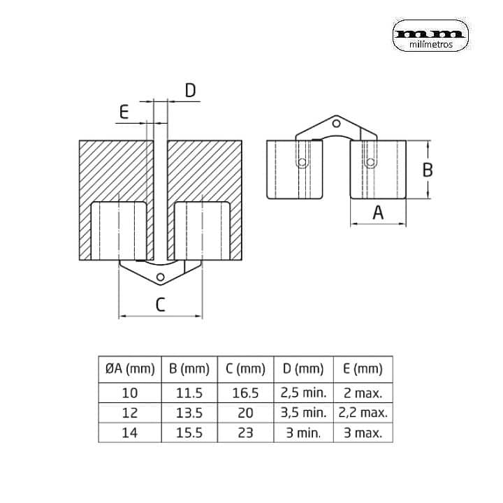 -Material: Latón. -Acabado: Pulido Barnizado. -Medidas: Ø10mm x 24mm / Ø12mm x 27mm / Ø14mm x 32mm. -Incluye 1 Bisagra.