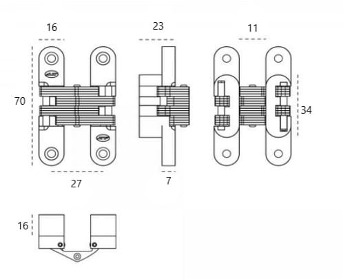BISAGRA OCULTA DE EMBUTIR PARA MUEBLES Y PUERTAS.