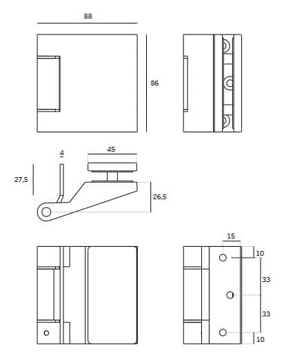 BISAGRA PARA PUERTAS DE CRISTAL. CARACTERISTICAS: