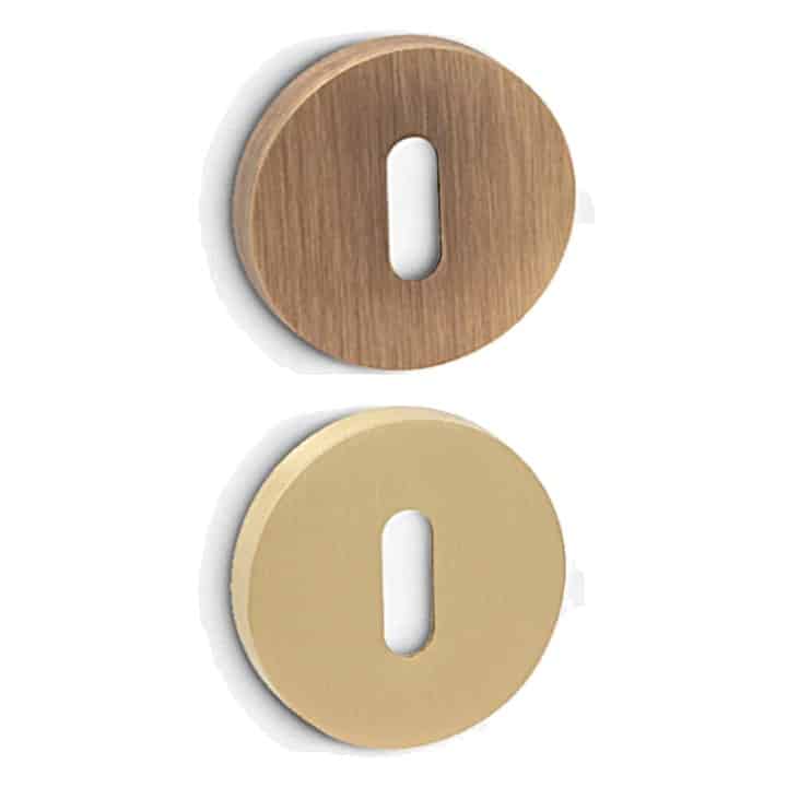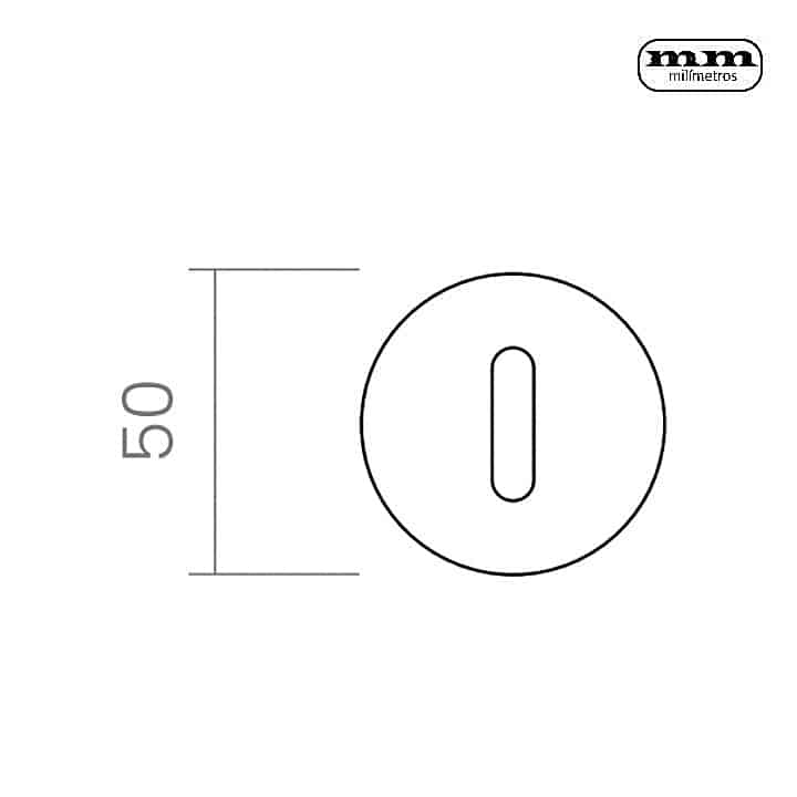 Bocallave tipo patent redondo Contemporáneo de 50mm, ideado como embellecedor para el ojo de la cerradura y con la función de proteger la puerta de las rozaduras con las llaves. Puede ser aplicado en puertas de interior y exterior.