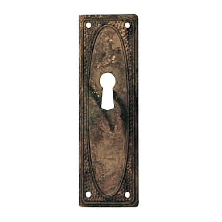 -Material: Latón. -Acabado: Envejecido Manchas. -Medidas: 97x33mm (Alto x ancho). -Incluye 1 Bocallave.