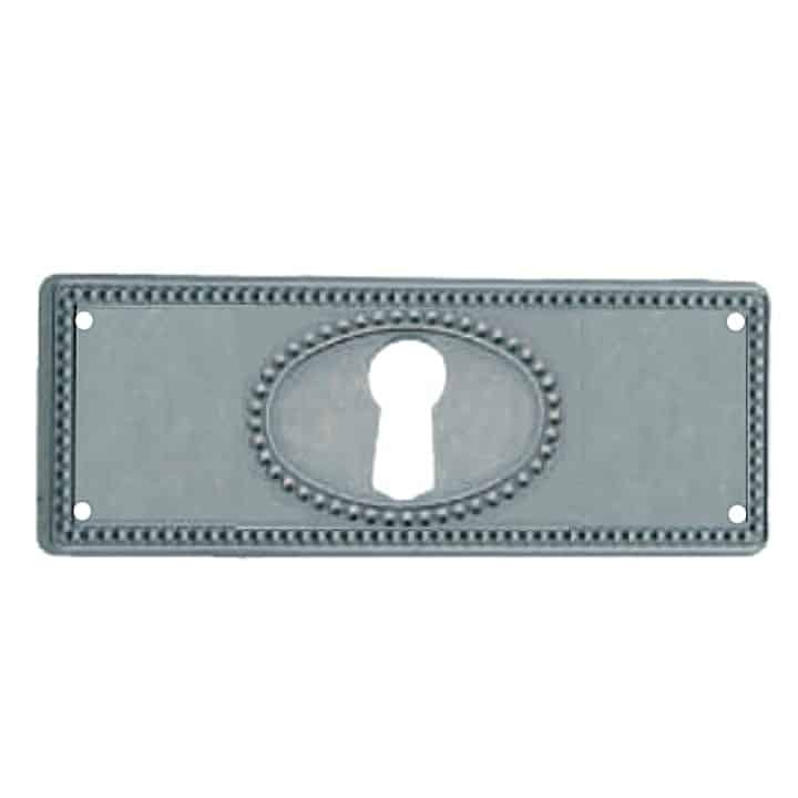 -Material: Latón. -Acabado: Plata Antigua. -Medidas: 97x33mm (Ancho x Alto). -Incluye 1 Bocallave.