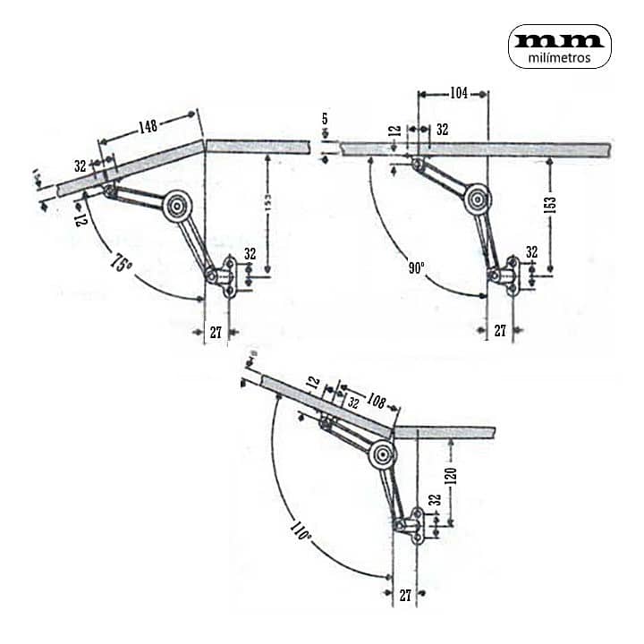 -Ángulo de apertura ajustable a 75º, 90º o 105º.