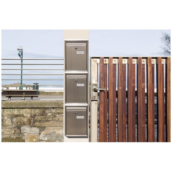 Buzón Individual que puede utilizarse también como Recogecartas, combinándolo con un Bocacartas, y permite su colocación en agrupaciones.
