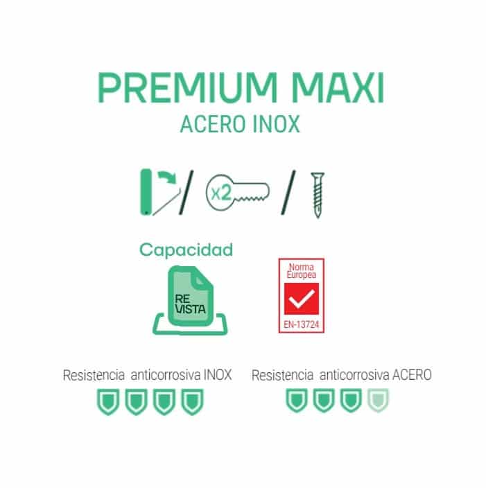 • Capacidad Buzón: REVISTA. • Resistencia Anticorrosiva Acero: •Estanqueidad: Sí. •Material: Acero Inoxidable Satinado AISI 304 con recubrimiento antihuellas.