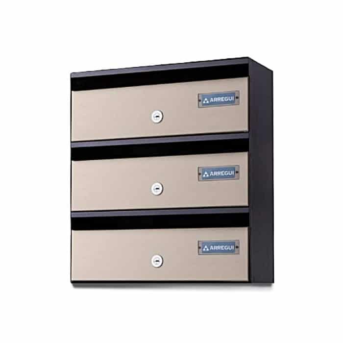 Grupo de 3 Buzones Horizontales en batería para comunidades, modelo Adapta (H3800). Adecuado para su colocación en INTERIOR, ideal para Reposiciones.