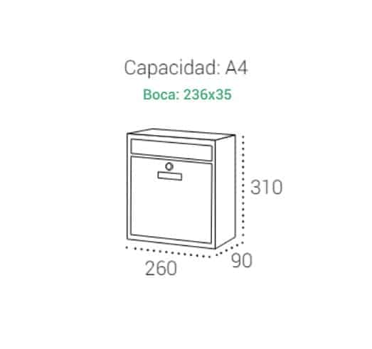 •Medida Buzón: 310x260x90mm (alto x ancho x fondo).
