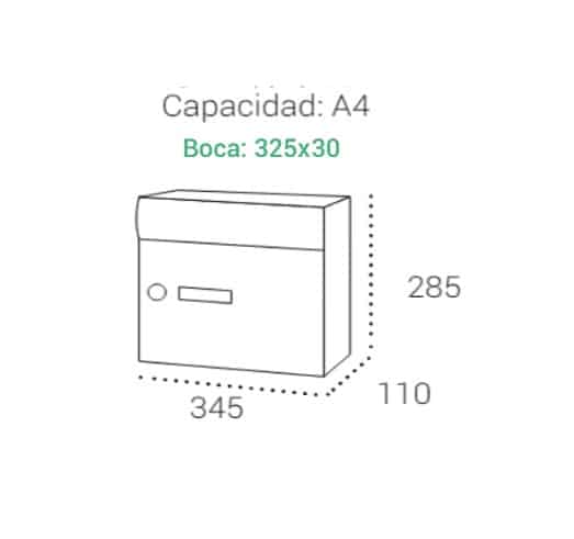 •Medida Buzón: : 285x345x110mm (alto x ancho x fondo).