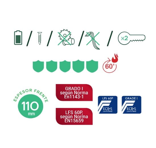• resistencia al fuego: mantiene una temperatura interior por debajo de los 170ºc durante 1 hora (el papel se descompone a 177ºc)