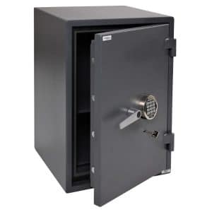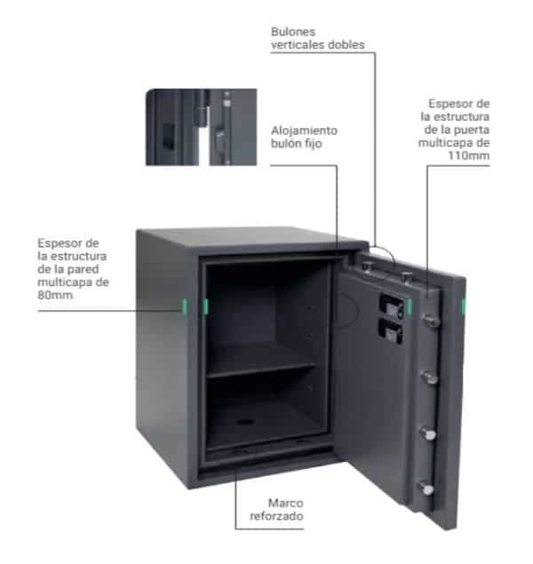 Una caja fuerte de sobreponer con muy alta seguridad ante el robo (certificada grado i) e ignífuga (certificada lfs60p).
