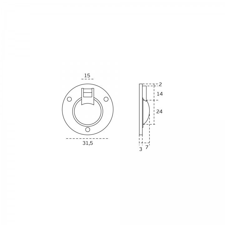 CAZOLETA REDONDA DE EMBUTIR CON TIRADOR PARA MUEBLES.
