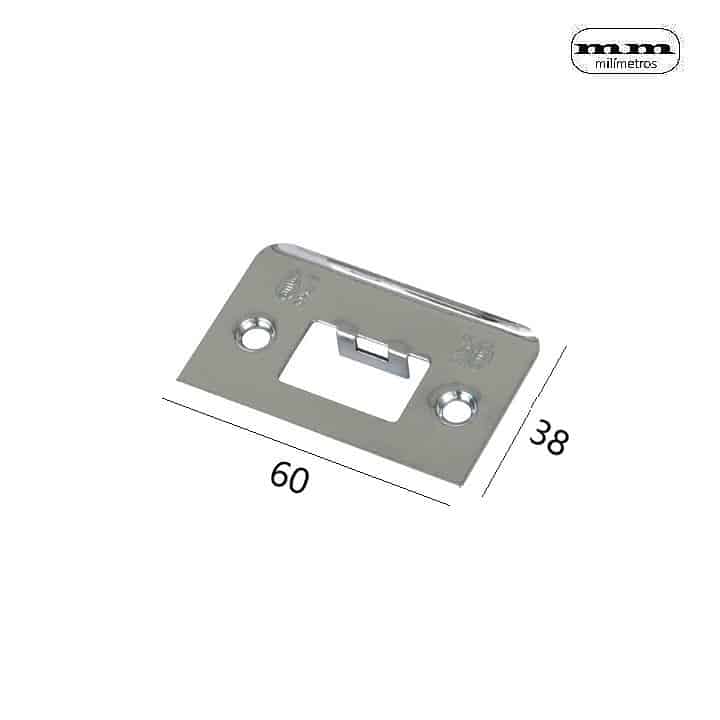 -Material: Acero. -Acabado: Niquelado. -Medida: 60X38mm. -Reversible. -Incluye 1 Cerradero-Placa.