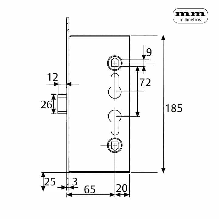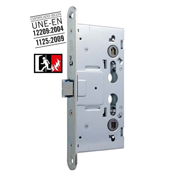 Cerradura de embutir para puertas metálicas, con función antipánico y cortafuego CE.