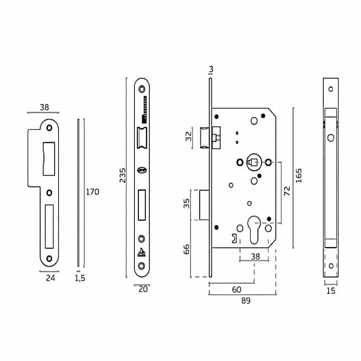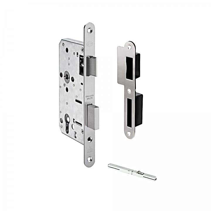 Cerradura de embutir con función antipánico, para cilindros de perfil europeo.