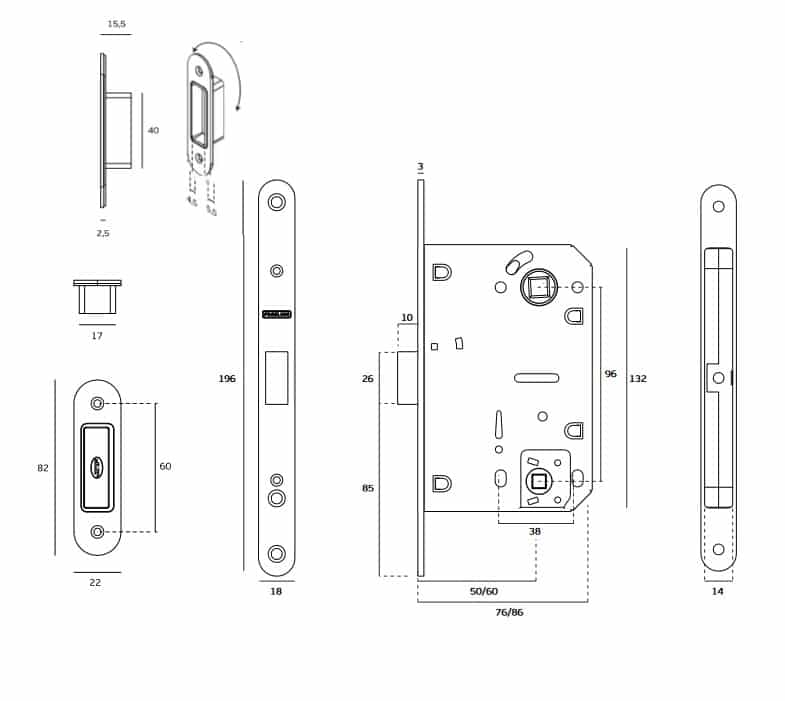 LA MISMA MUESCA EN LA PUERTA PERMITE LA APLICACIÓN DE 3 MODELOS DE CERRADURAS CON DIFERENTES FUNCIONES. EL MECANIZADO DE LA PUERTAS ES SIMÉTRICO, LO QUE LA HACE REVERSIBLE. CARACTERISTICAS: