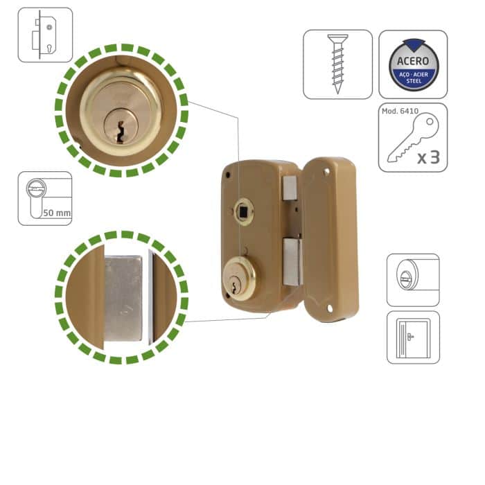 CERRADURA DE SOBREPONER ESMALTADO PARA PUERTAS DE MADERA. CARACTERISTICAS: