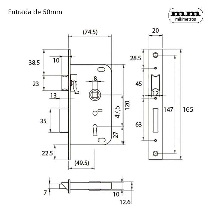 -Funcionamiento: » La llave acciona la palanca (1 vuelta) y el picaporte. La nueca acciona el picaporte.