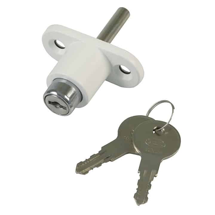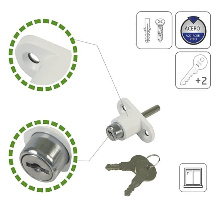 -Material: Acero. -Acabado: Blanco -Medida: 53x23mm. -Incluye 2 Llaves iguales.