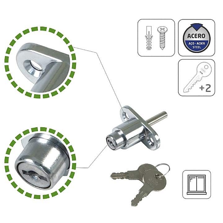 -Material: Acero. -Acabado: Cromado Brillo. -Medida: 53x23mm. -Incluye 2 Llaves iguales.