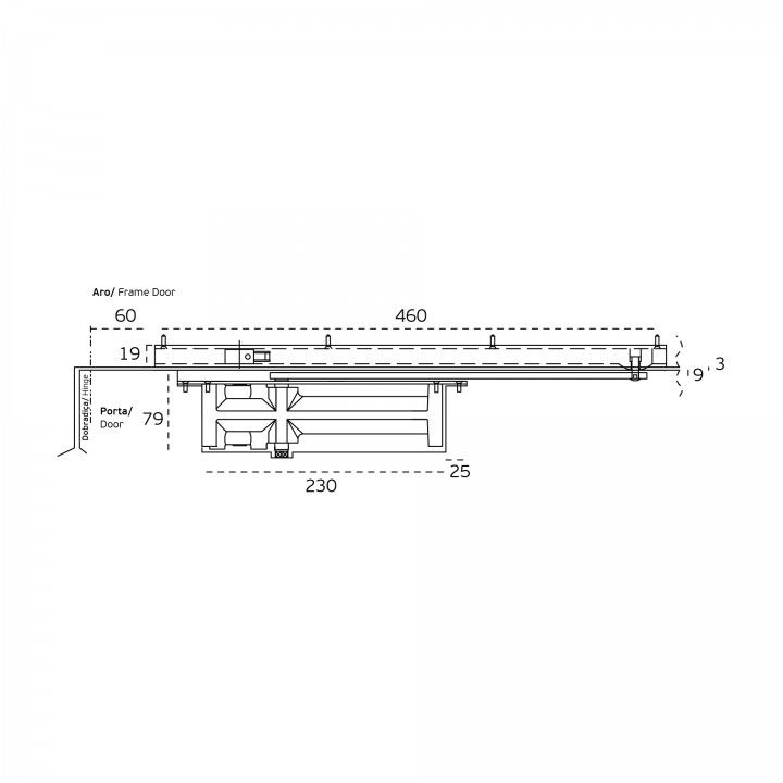 CIERRAPUERTAS OCULTO HIDRÁULICO DE EMBUTIR PARA PUERTAS DE BATIENTE.
