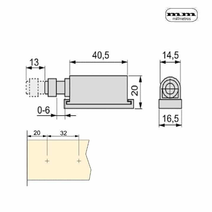 -Material: Plástico. -Acabado: Gris. -Largo: 40,5mm. -Fuerza Magnética de 3,5 kg. -Incluye 1 Cierre.