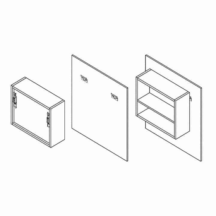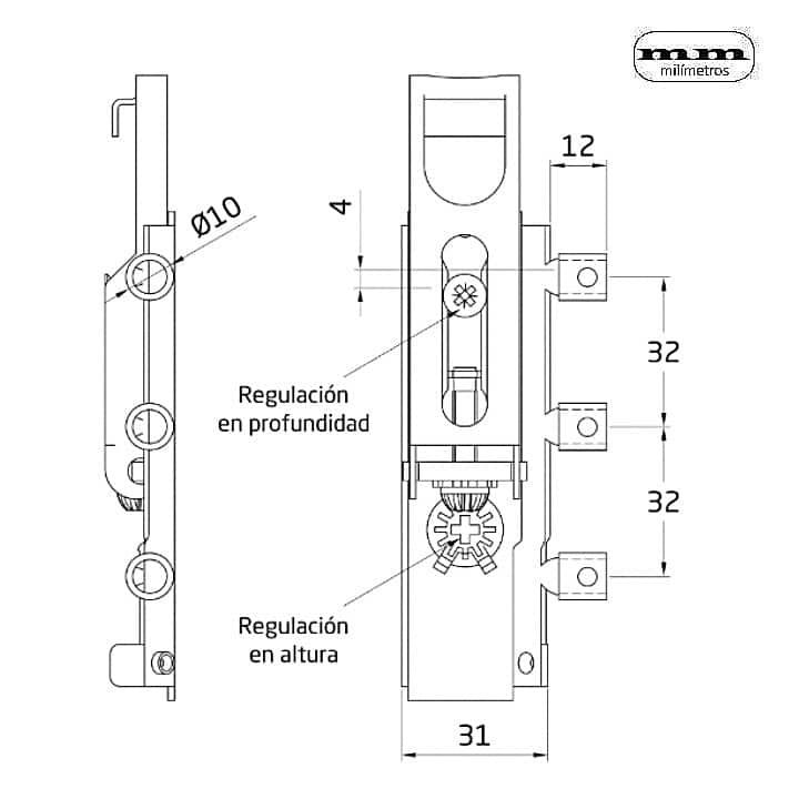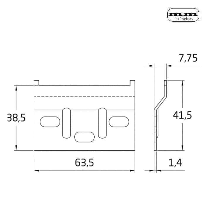 -Material: Acero. -Acabado: Zincado. -Medidas: 63,5x38,5mm. -Peso Máximo recomendado: 65Kg / Unidad. -Instalación en la parte trasera del mueble. -Con ajustes de regulación en altura ± 9 cm y en profundidad 25 mm max.