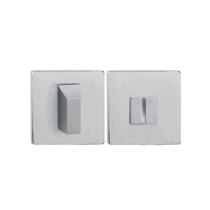 Condena/Cierre cuadrada para puertas de baño, con hendidura de seguridad para moneda de desbloqueo. Sin indicador de color Libre/Ocupado.