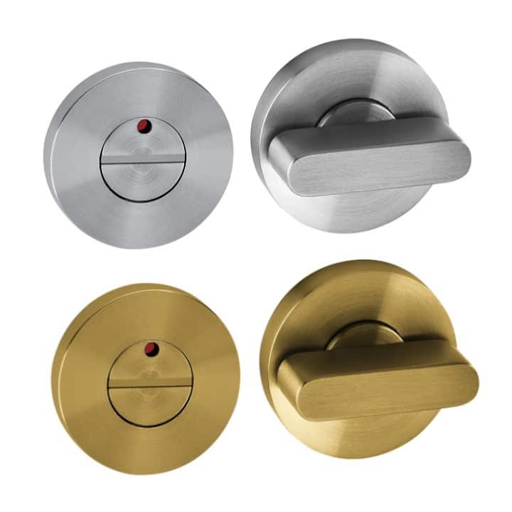 Condena/Cierre de baño con hendidura para moneda de desbloqueo de seguridad e indicador de color Libre/Ocupado. Diseño Moderno y actual.