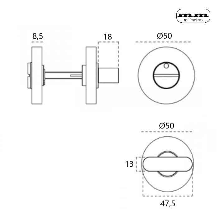 -Material: Acero Inoxidable AISI 304. -Acabados: Inox Satinado / Titanium Gold (Dorado). -Diámetro: Ø50mm. -Fijaciones ocultas. -Incluye tornillos de Sujeción.