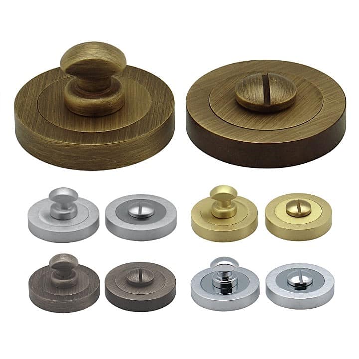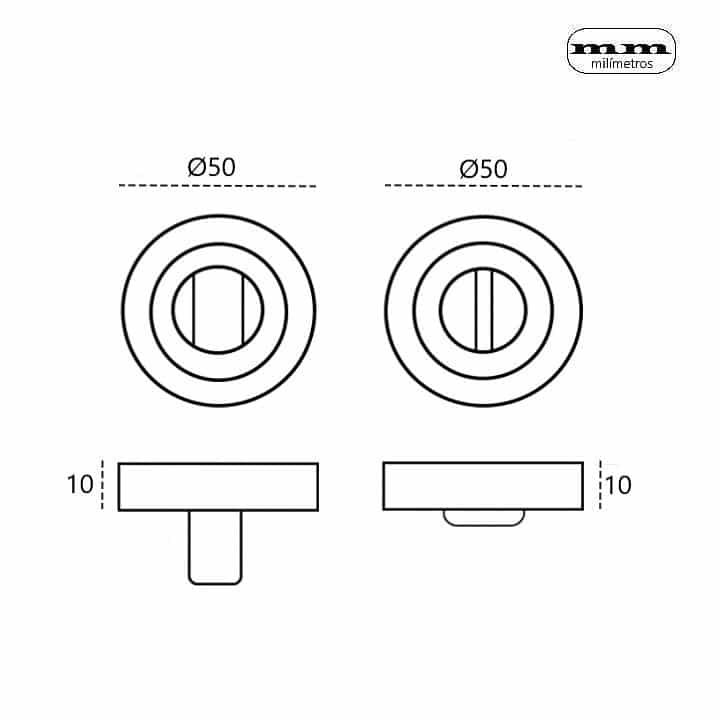 Condena/Cierre de baño redonda con roseta de Ø50mm, con hendidura para moneda de desbloqueo de seguridad. Diseño Moderno y actual.