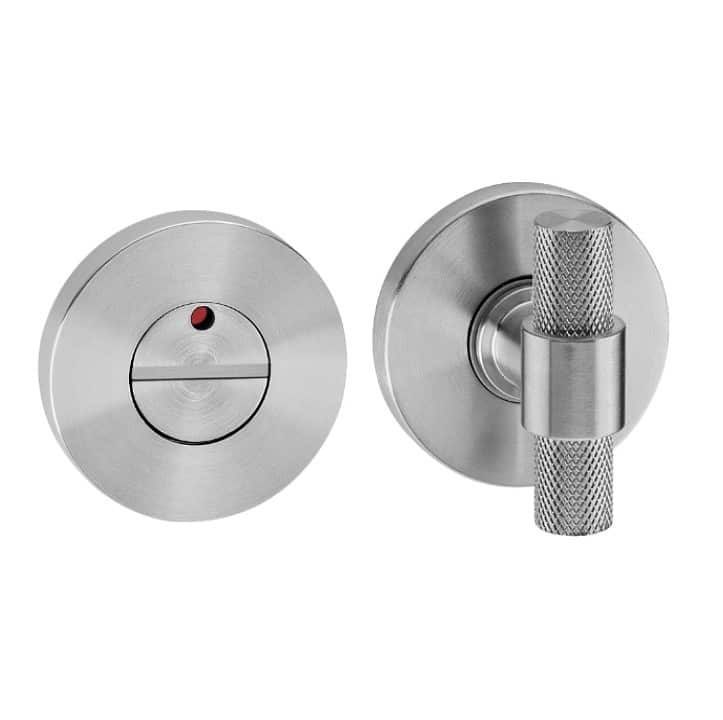 Condena/Cierre de baño Grafilado, con hendidura para moneda de desbloqueo de seguridad e indicador de color Libre/Ocupado. Diseño Moderno y actual.