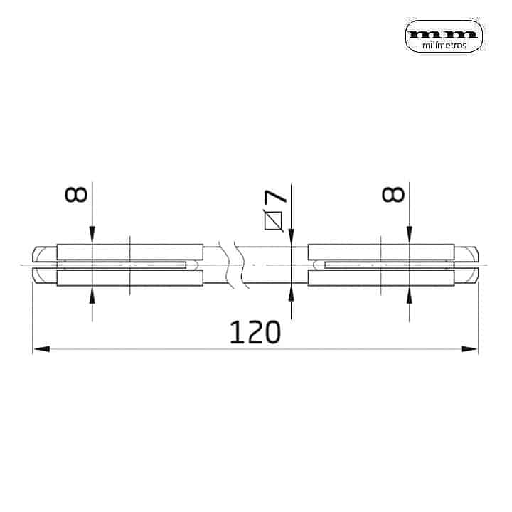 -Material: Acero. -Acabado: Zincado. -Medida: 120x7mm. -2 Reductores de 7mm a 8mm.