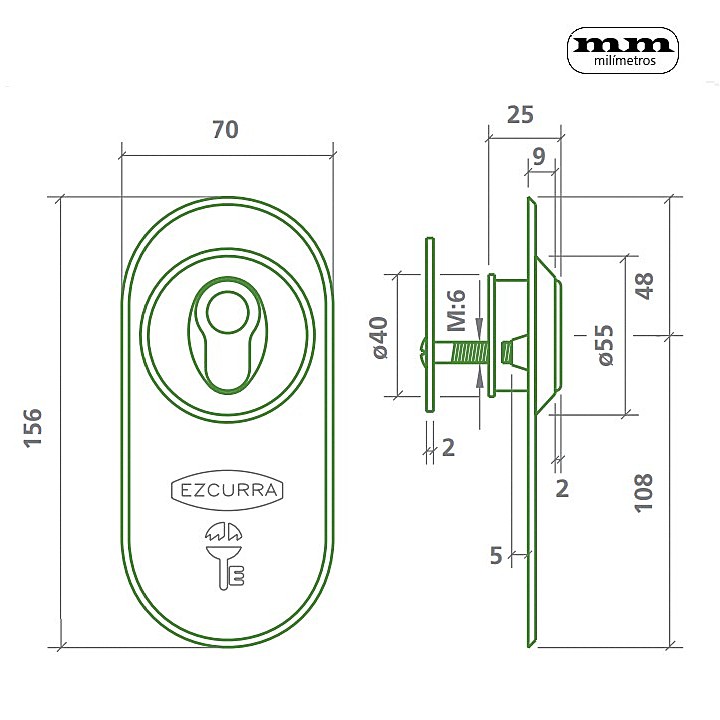 Escudo protector de seguridad formado por el escudo 420P + una placa embellecedora. Dispositivo de seguridad que se utiliza para proteger el cilindro de la cerradura de posibles ataques.