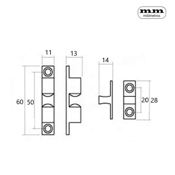 -Material: Latón. -Acabado: Níquel satinado. -Medida: 60mm. -Incluye 1 Golpete.