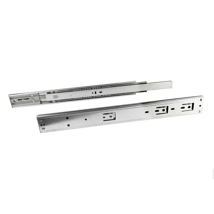 -Acabado: Galvanizado. -Medidas: 300mm / 400mm. -Grosor: 1.2×1.2×1.5mm -Altura: 45mm -Ancho: 12.7mm -Capacidad de carga: 40Kgs -Con rodamientos de bolas. -Extracción total. -Disponen de un gatillo para su desmontaje. -Cierre suave. -Incluye 2 guías para 1 cajón.