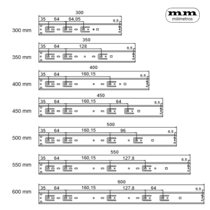 -Medidas: 300mm / 350mm / 400mm / 450mm / 500mm / 550mm / 600mm.