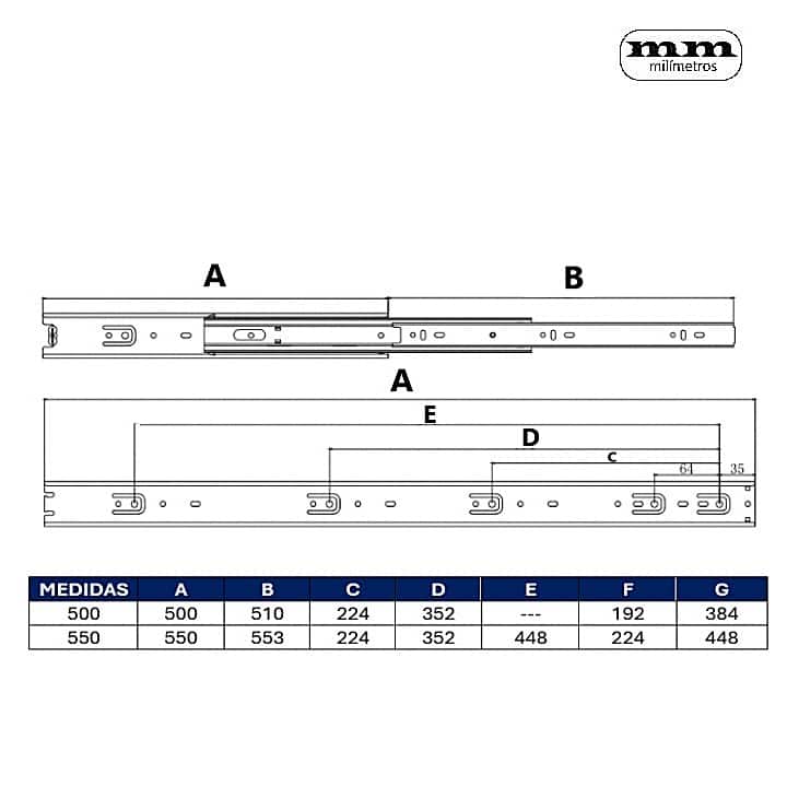 -Incluye 2 guías para 1 cajón.