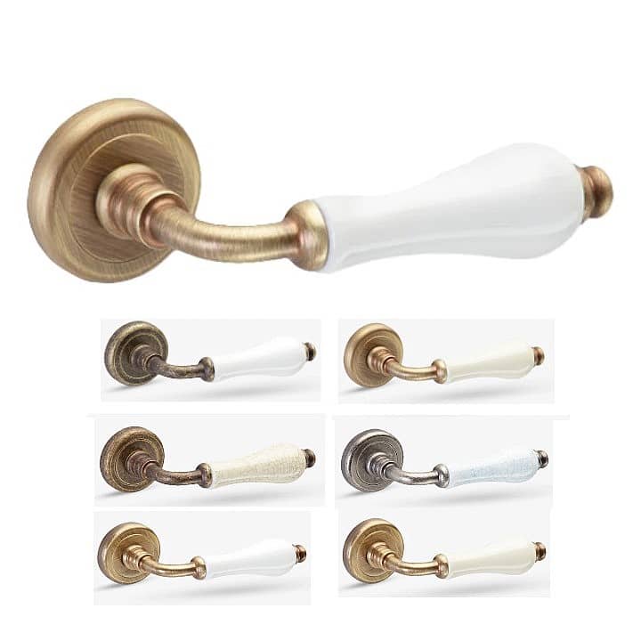 La manilla para puerta Bel.la, de poderosa presencia y diseño tradicional, presenta la técnica de «Craquelé» en algunos de sus modelos, que consiste en imitar las grietas que aparecen en obras de arte por el paso del tiempo, tratando de dar la misma apariencia la manilla. Es uno de los acabados más sencillos pero con un resultado espectacular. La manilla Bel.la está fabricada de Latón Macizo y Porcelana.
