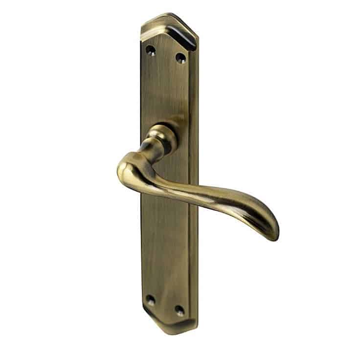 Juego de Manillas con placa de tornillos vistos para puertas.