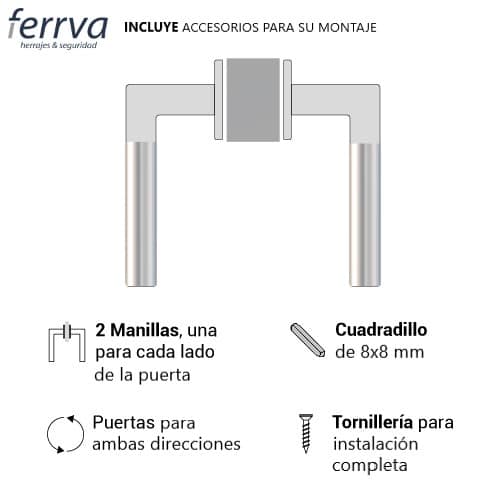 -INCLUYE DOS MANILLAS (UNA PARA CADA LADO DE LA PUERTA) Y ACCESORIOS DE MONTAJE.
