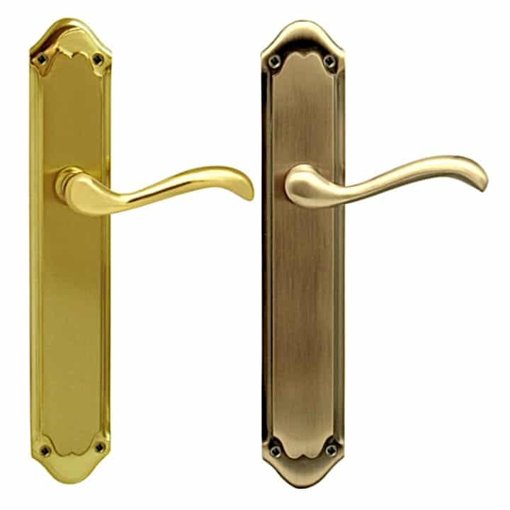Manilla clásica atemporal con placa para puertas de entrada o paso.