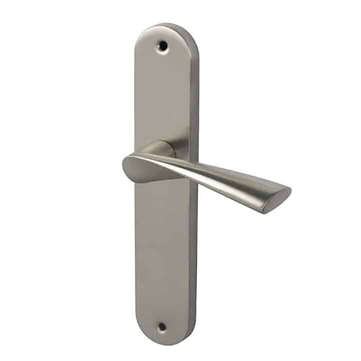 Juego de Manillas con placa ovalada y tornillos vistos para puertas.